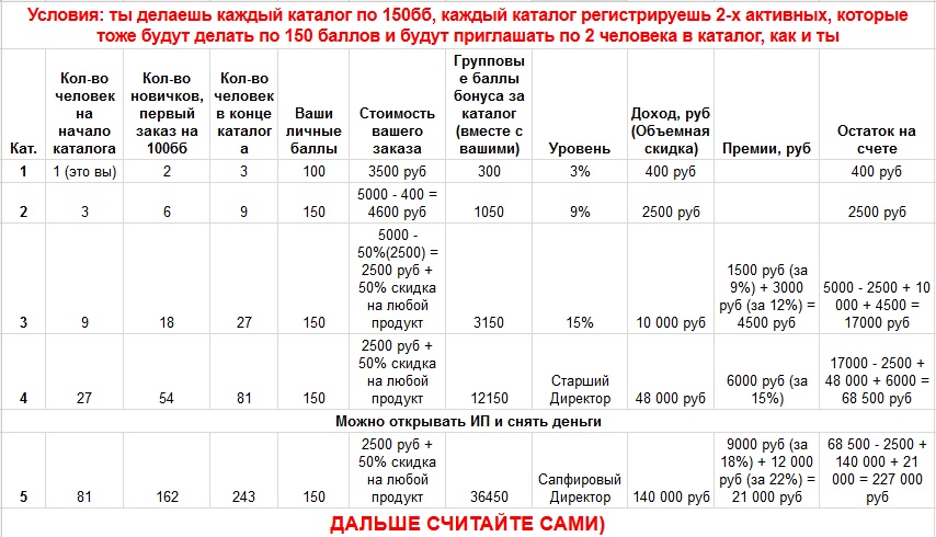 Для стремительного успеха вы должны делать заказы каждый каталог на 150 баллов.